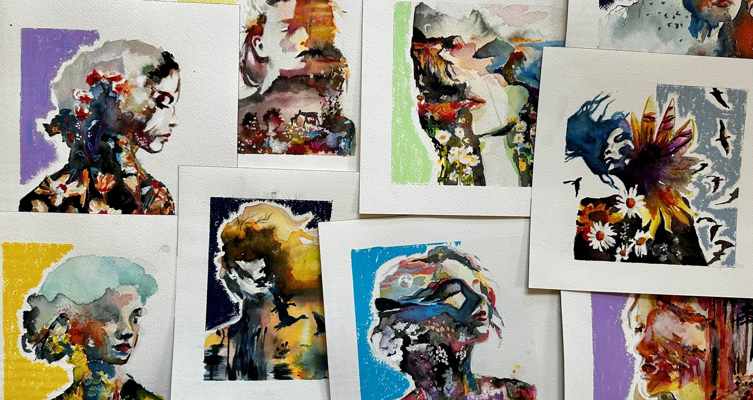 Anna Wise’s practice explores the boundary between internal and external landscapes, creating a portal between nostalgia, hope, and possibility. She combines portraits with landscapes based on places she’s both visited and imagined, exploring how the environments we move through shape who we are; and how we, in turn, shape them. She begins with light color washes and sketches that anchor the piece but allows instinct to guide the final direction. Using a mix of watercolor, spray paint, pastels, acrylics, and oil, she builds each painting through many glazes and layers of mark-making, where structure and spontaneity meet to tell a story.