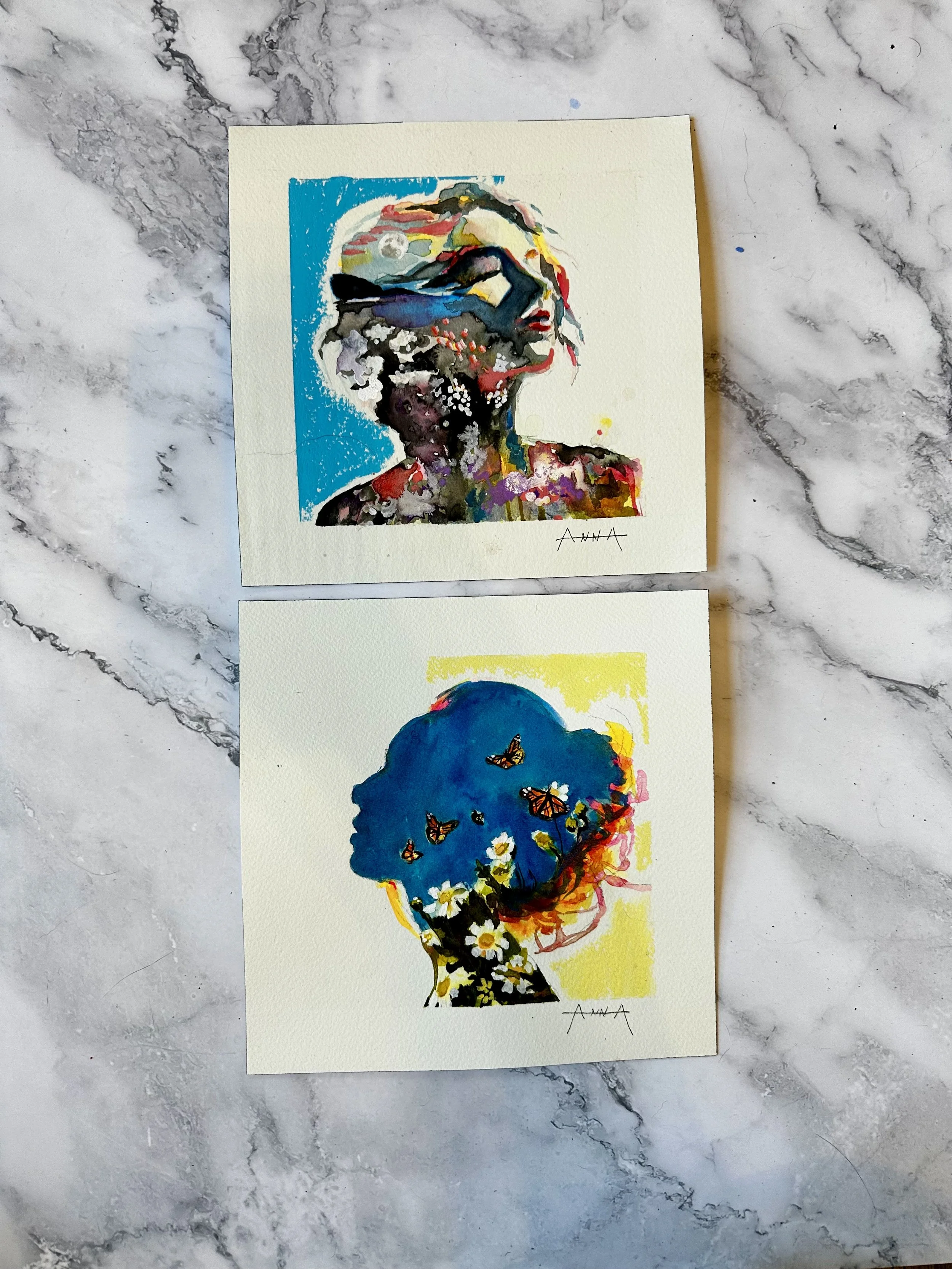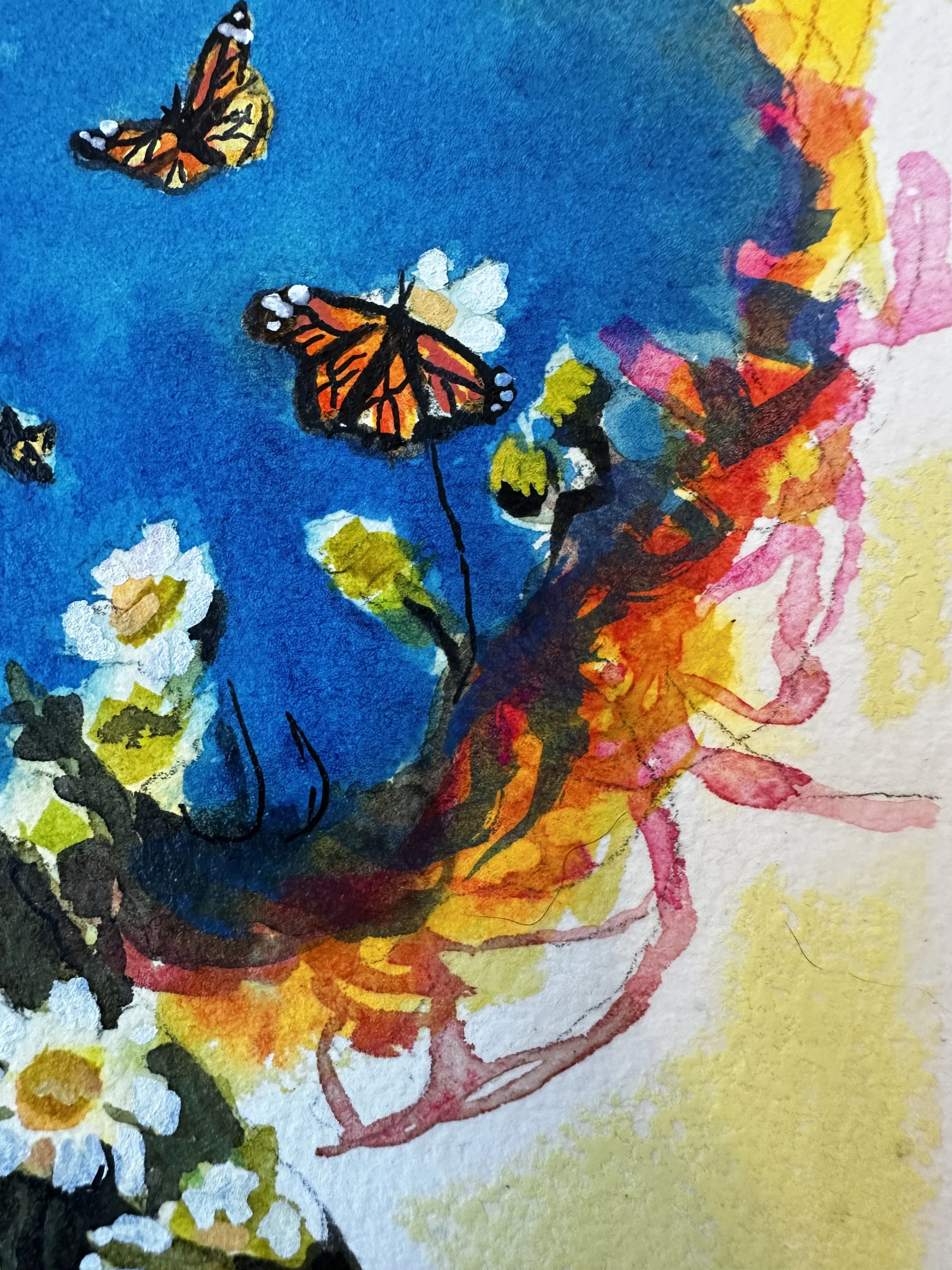 Watercolor, ink, and pastel on arches water color paper