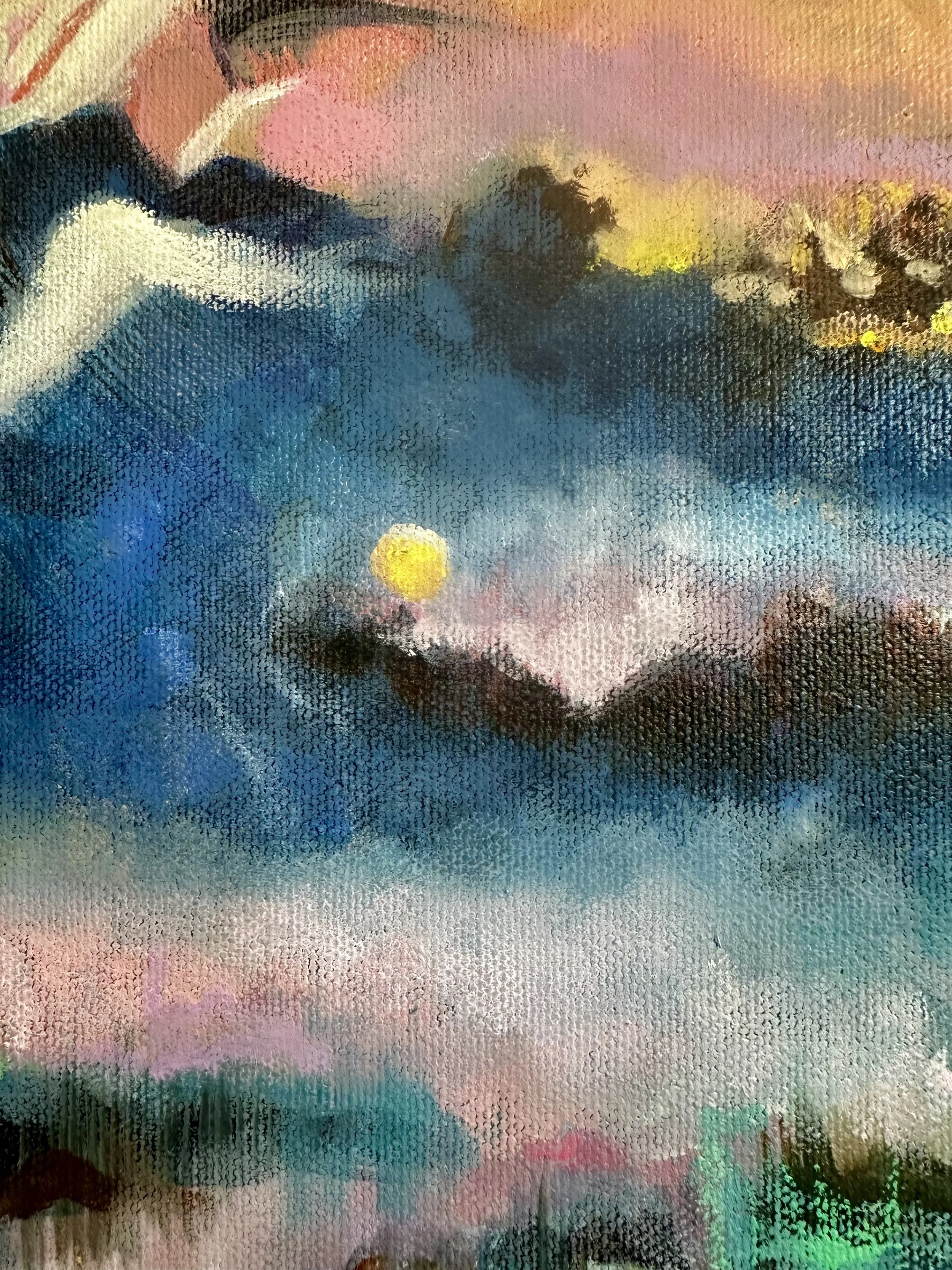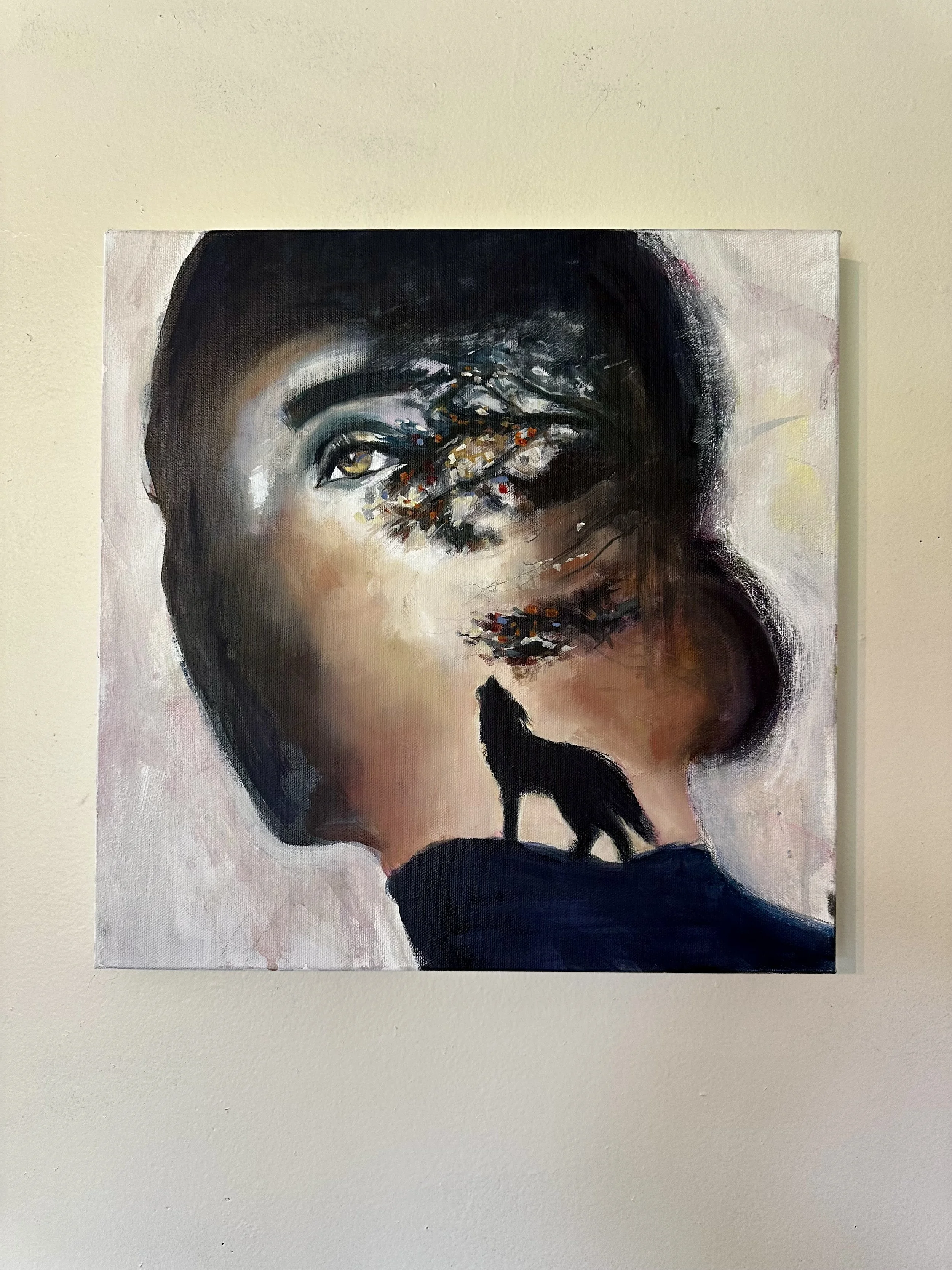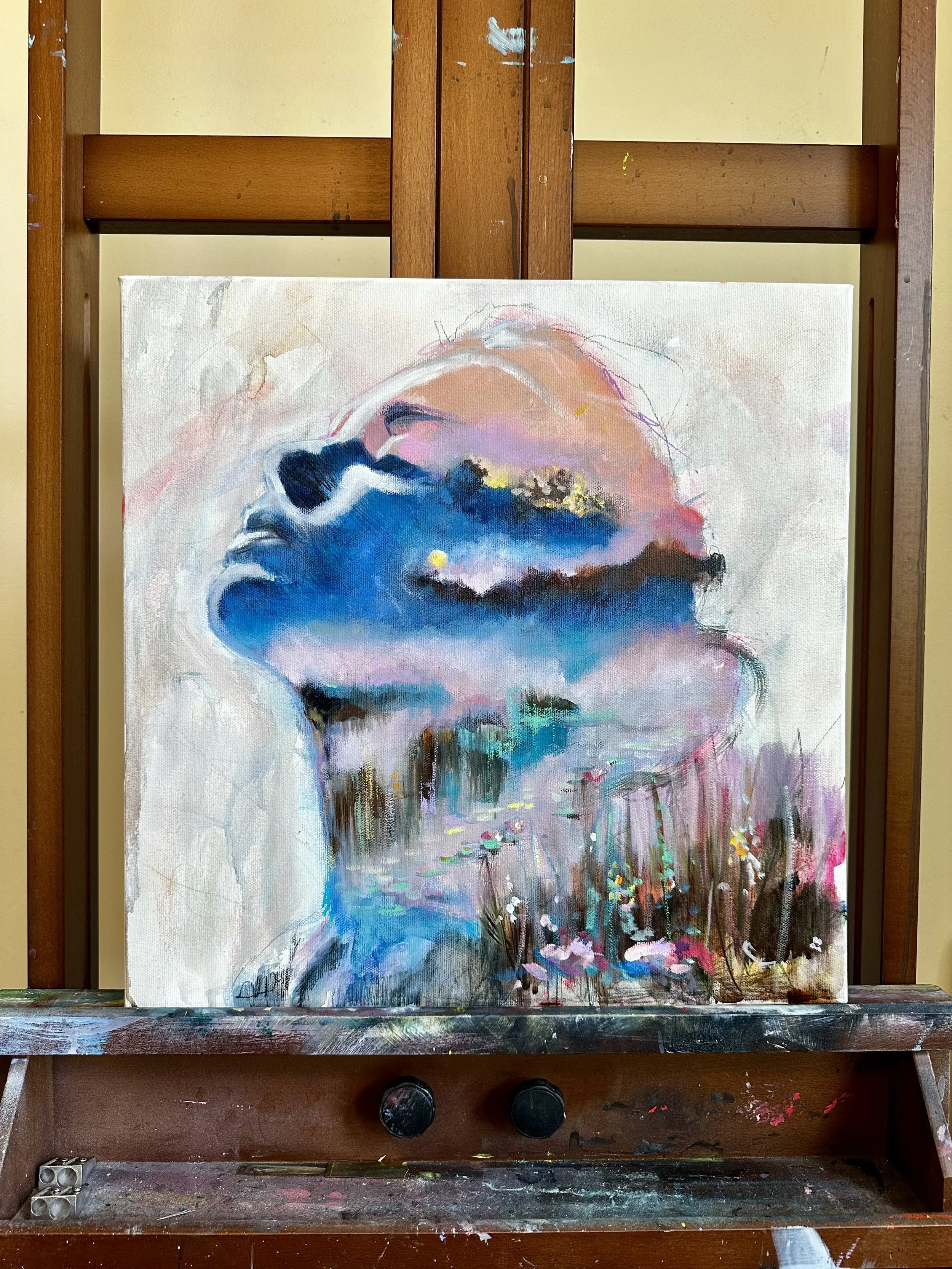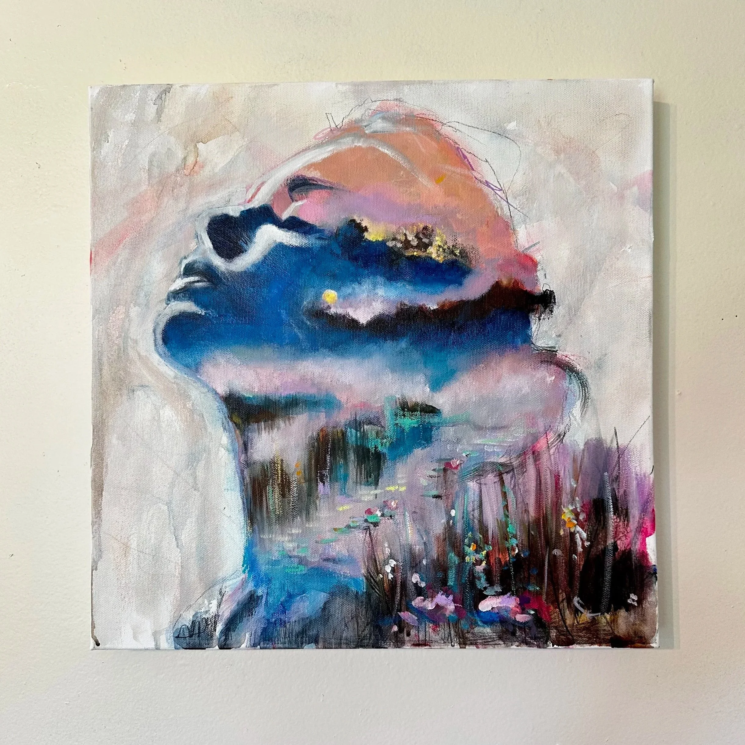 Arcrylic, pastel, spray paint, and oil paint on gallery wrapped canvas.