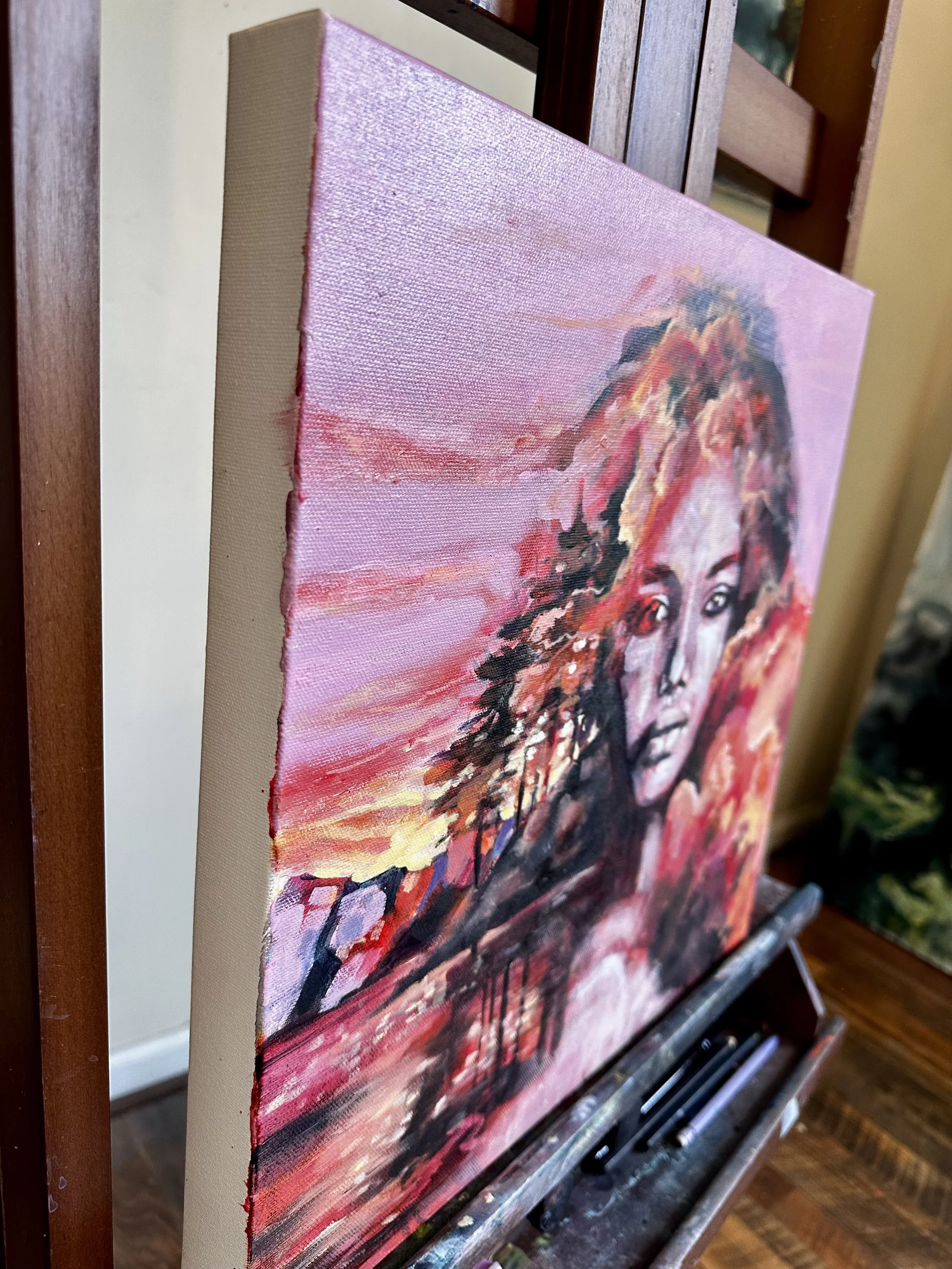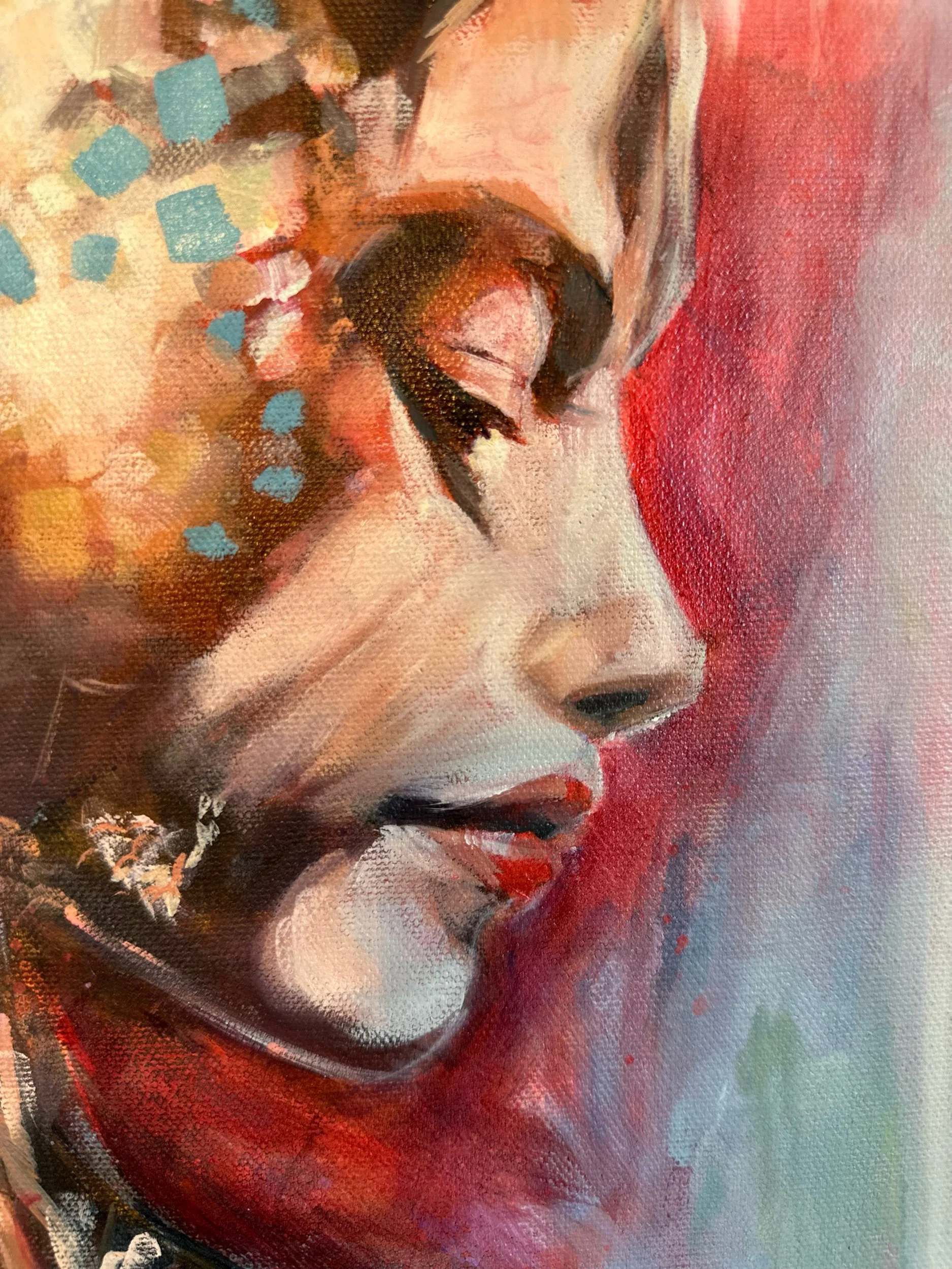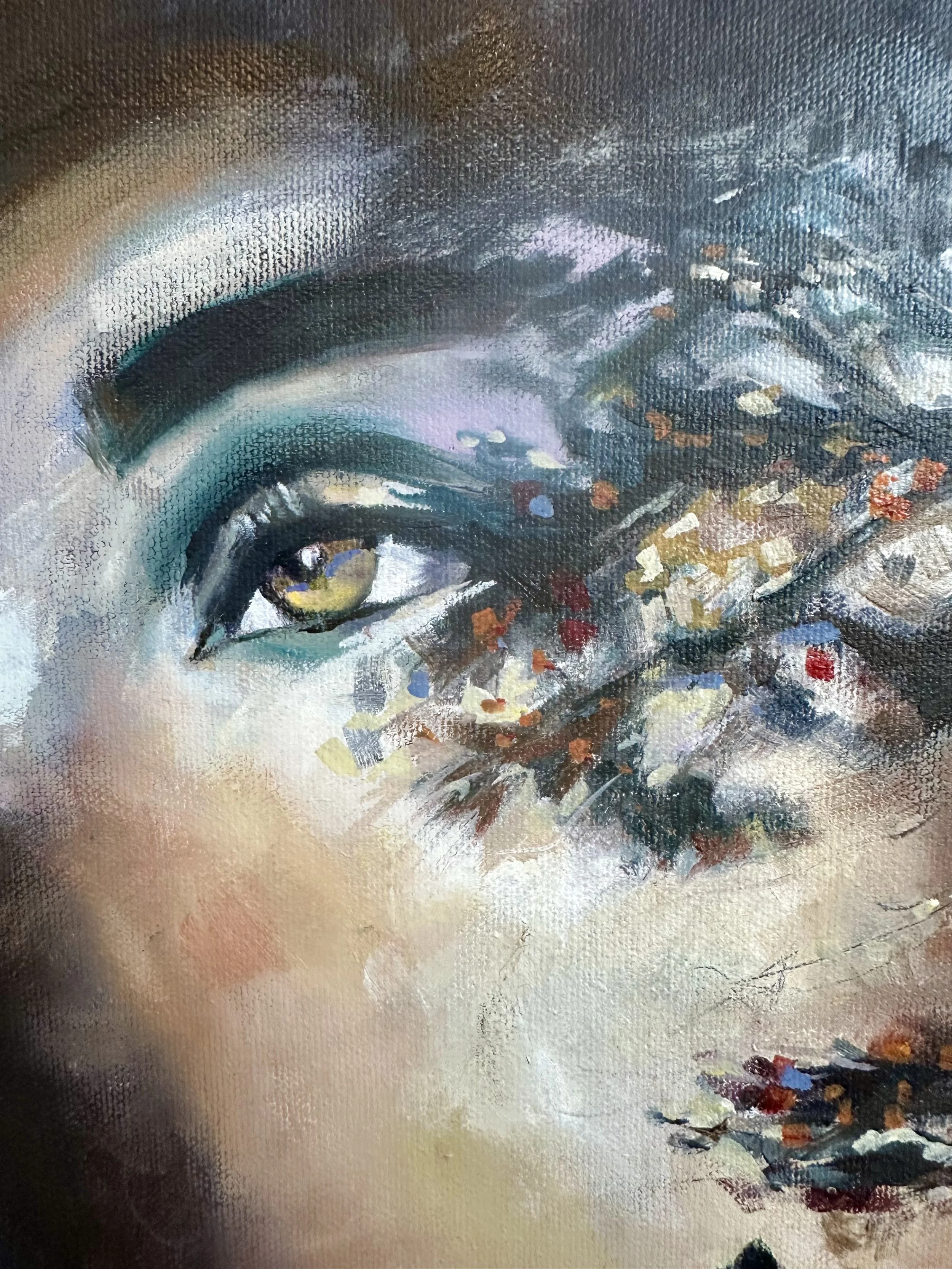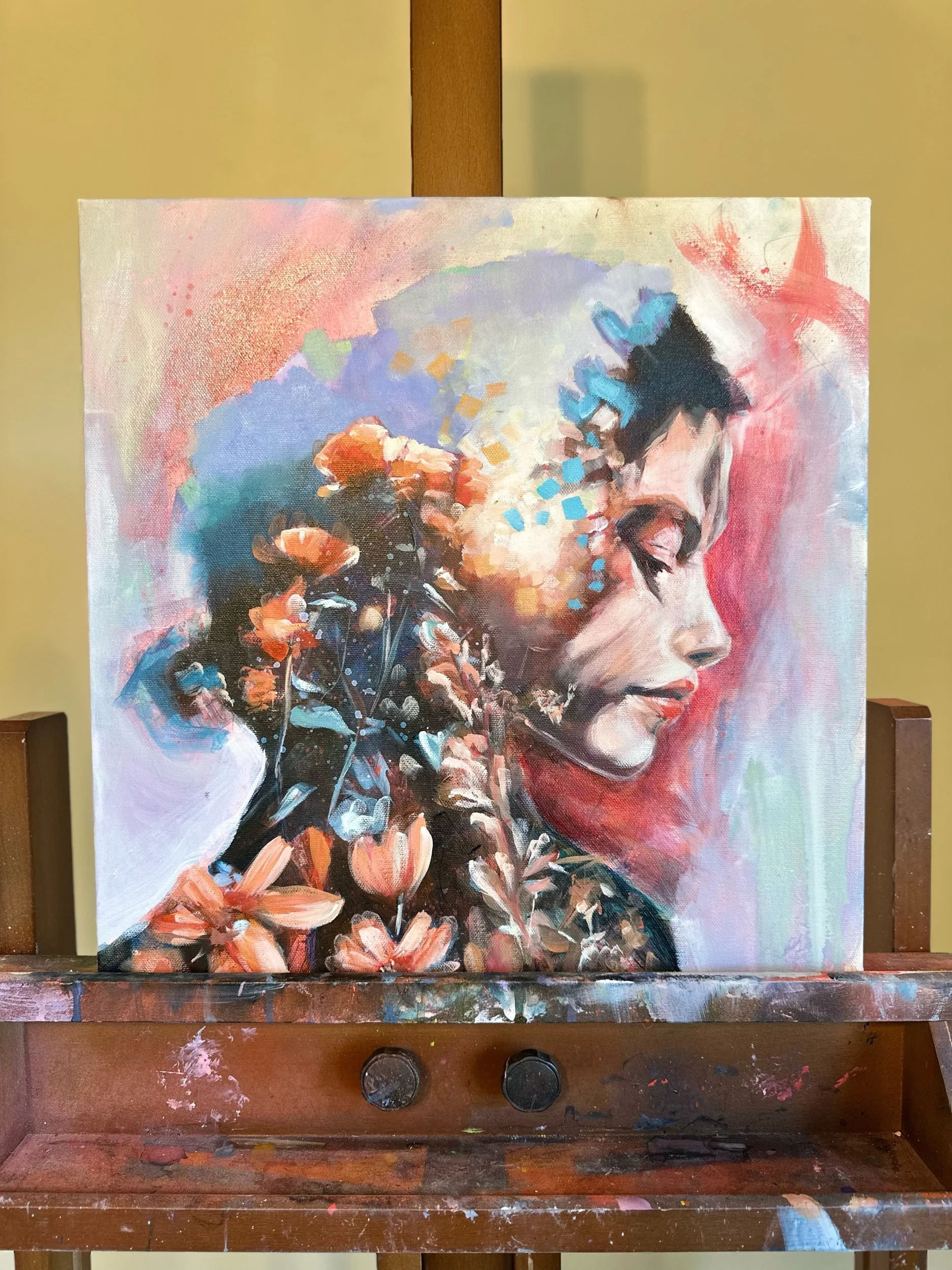 Arcrylic, pastel, spray paint, and oil paint on gallery wrapped canvas.