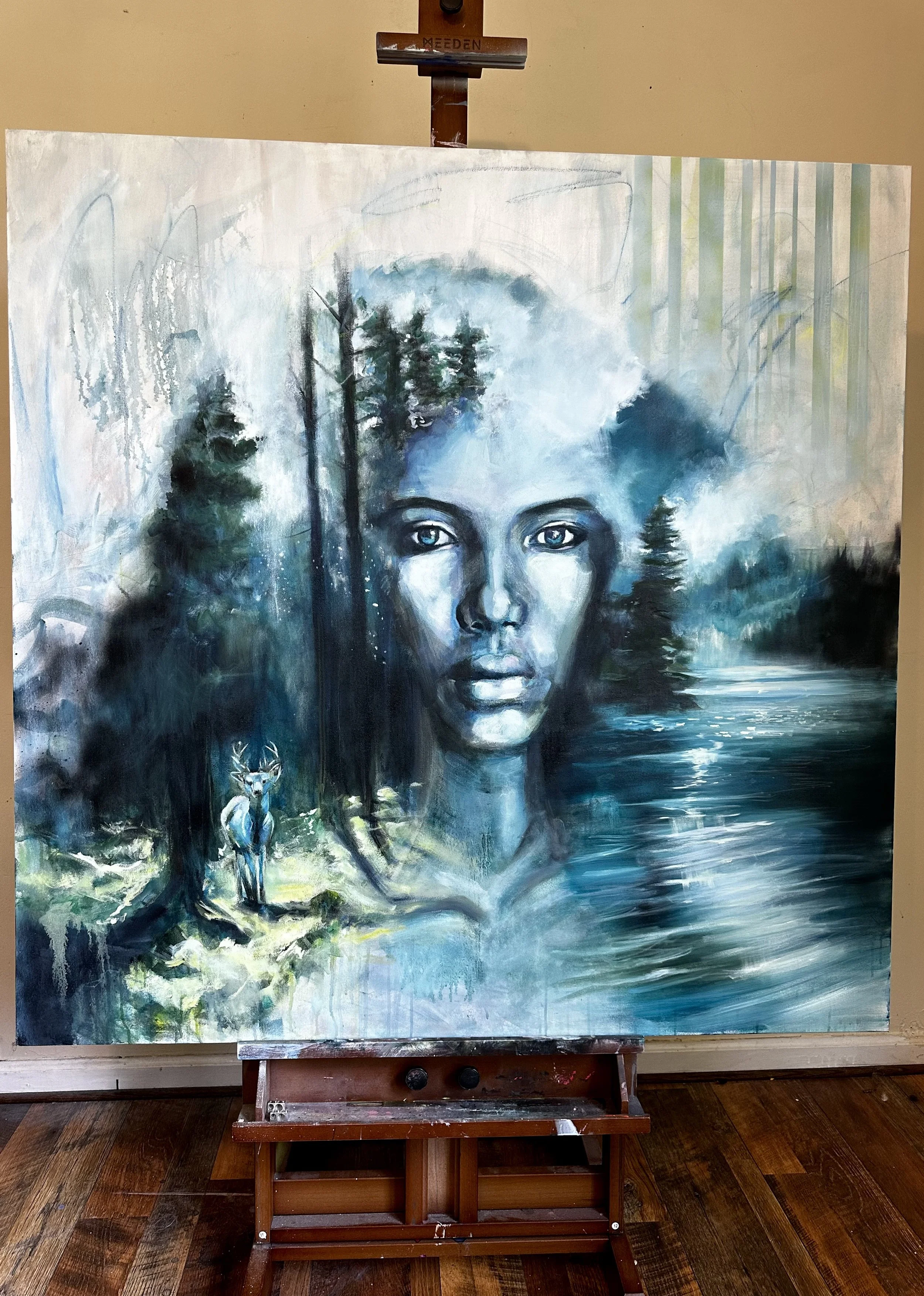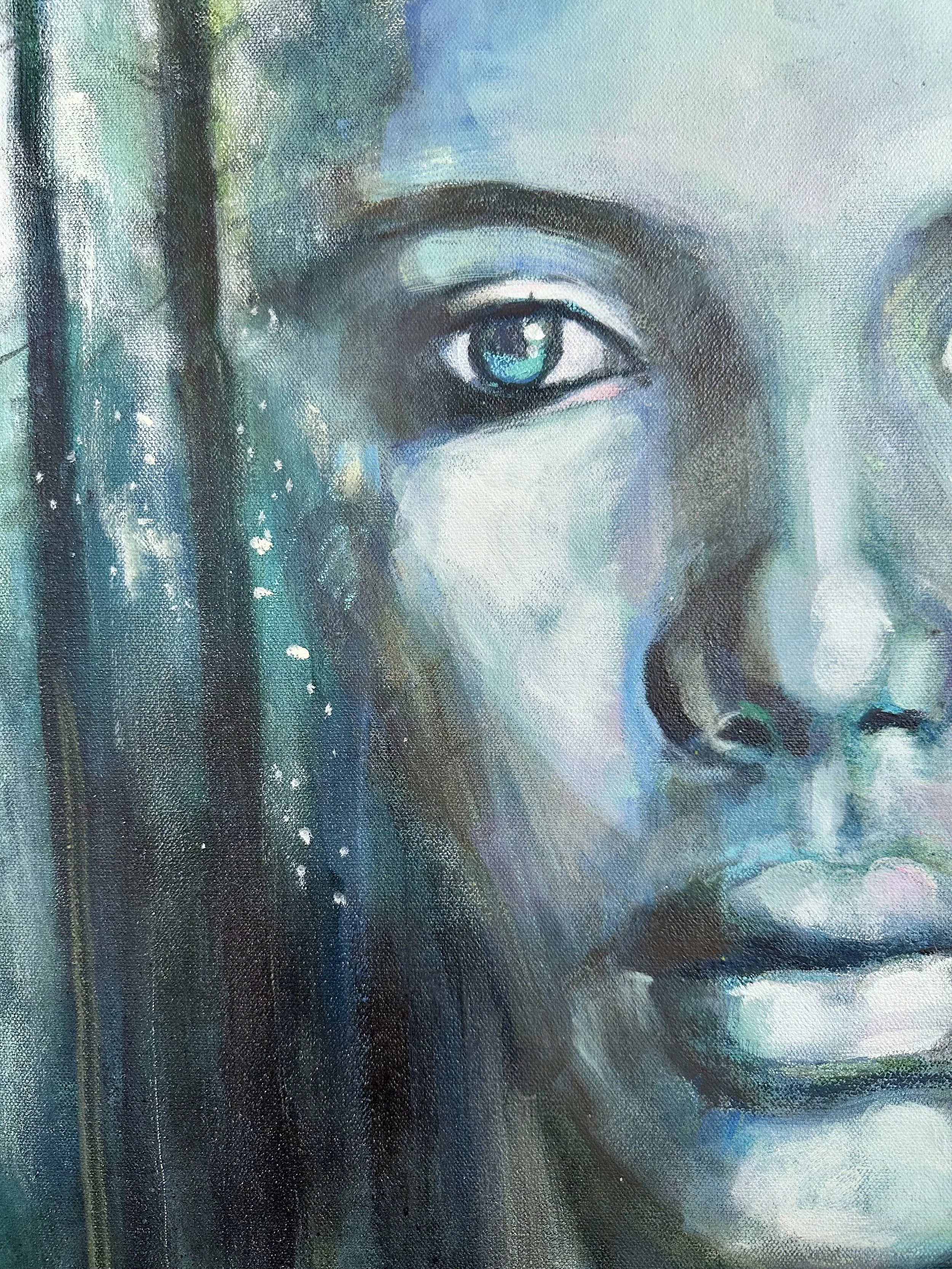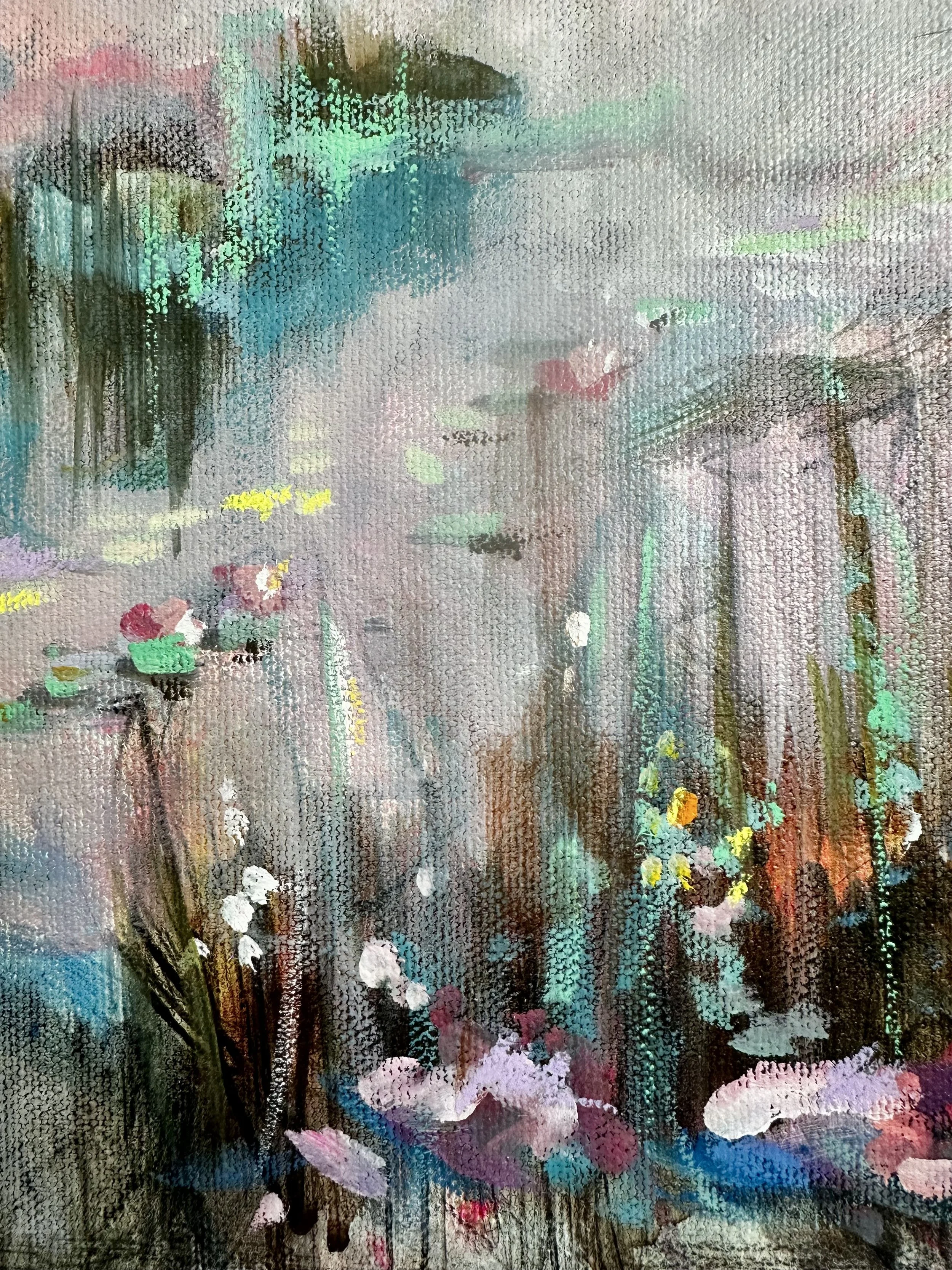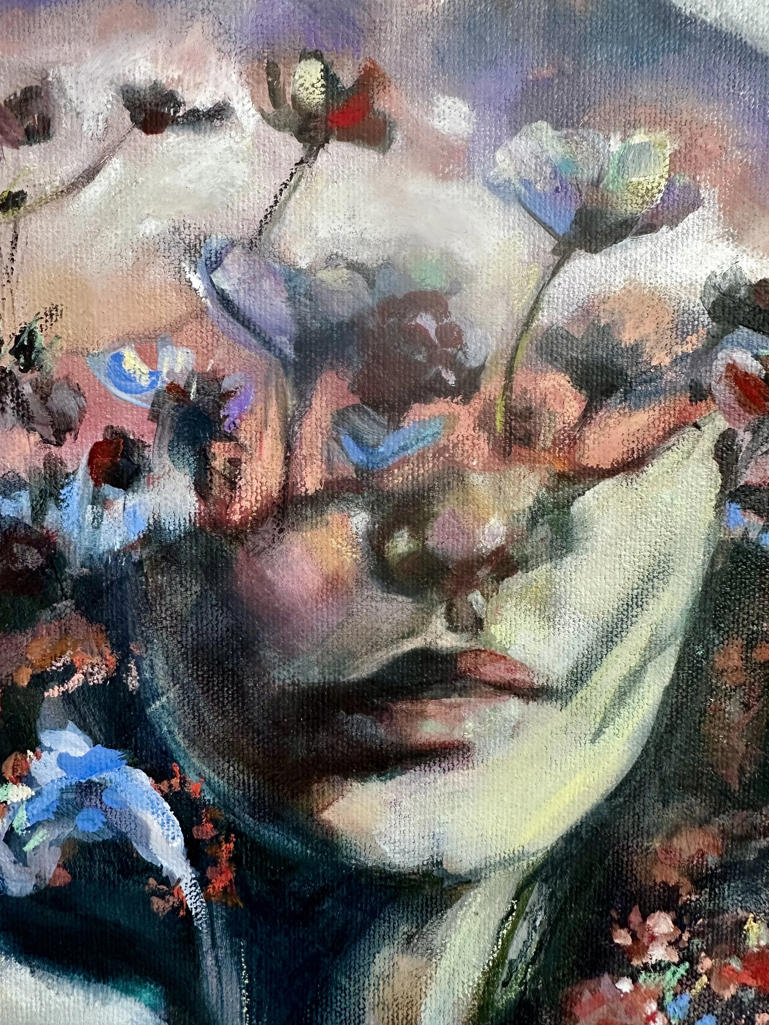 Arcrylic, pastel, spray paint, and oil paint on gallery wrapped canvas.