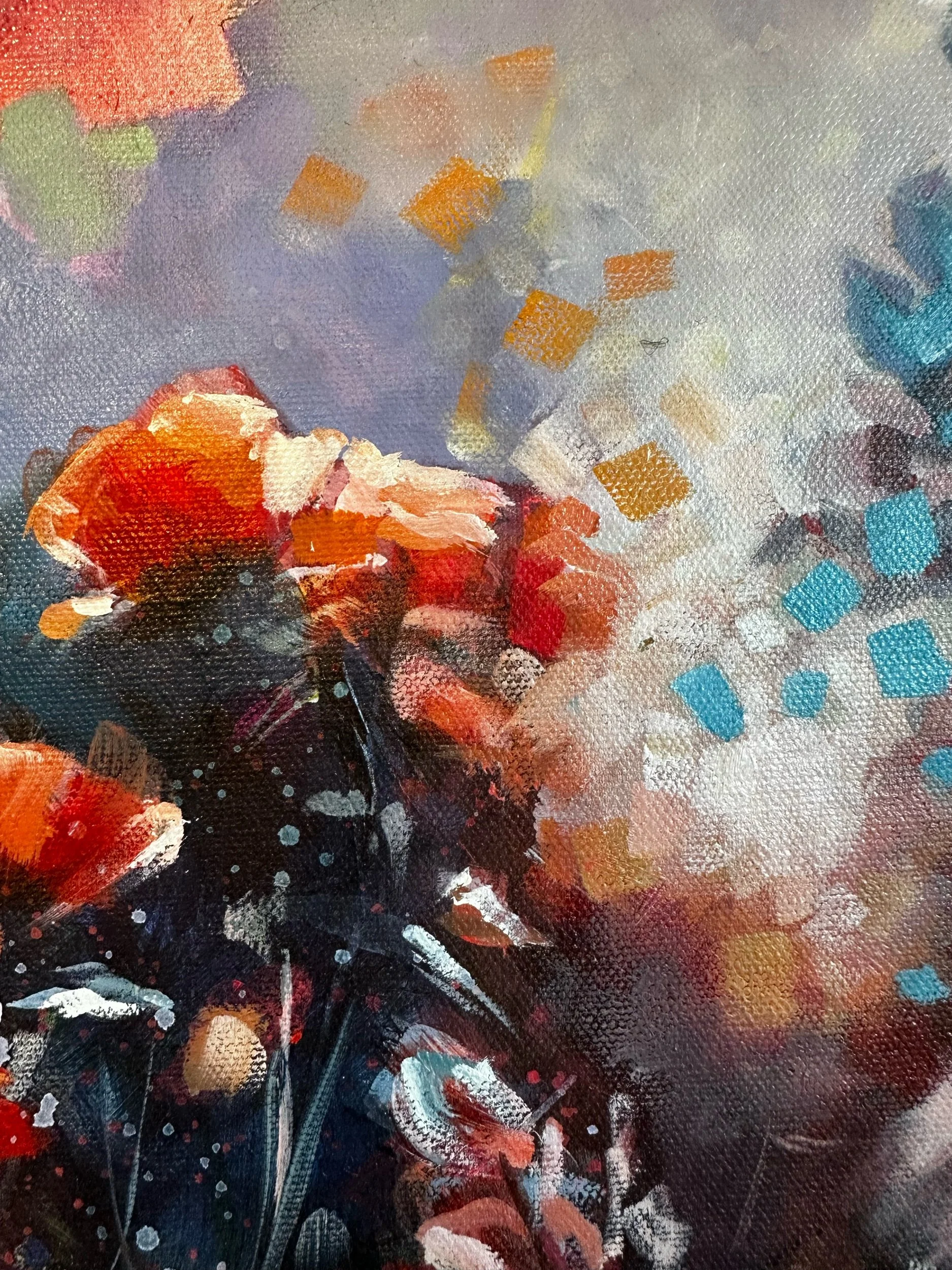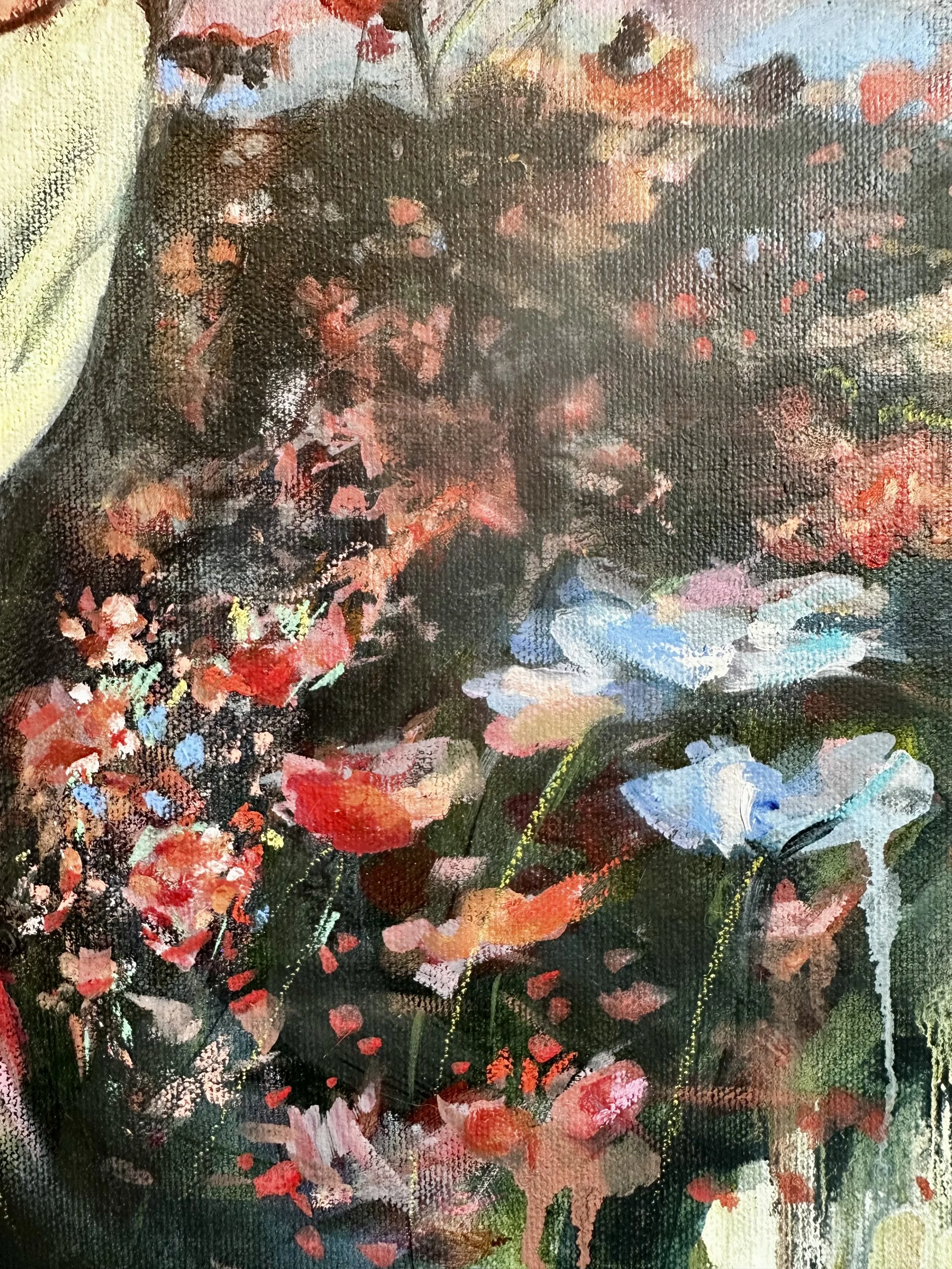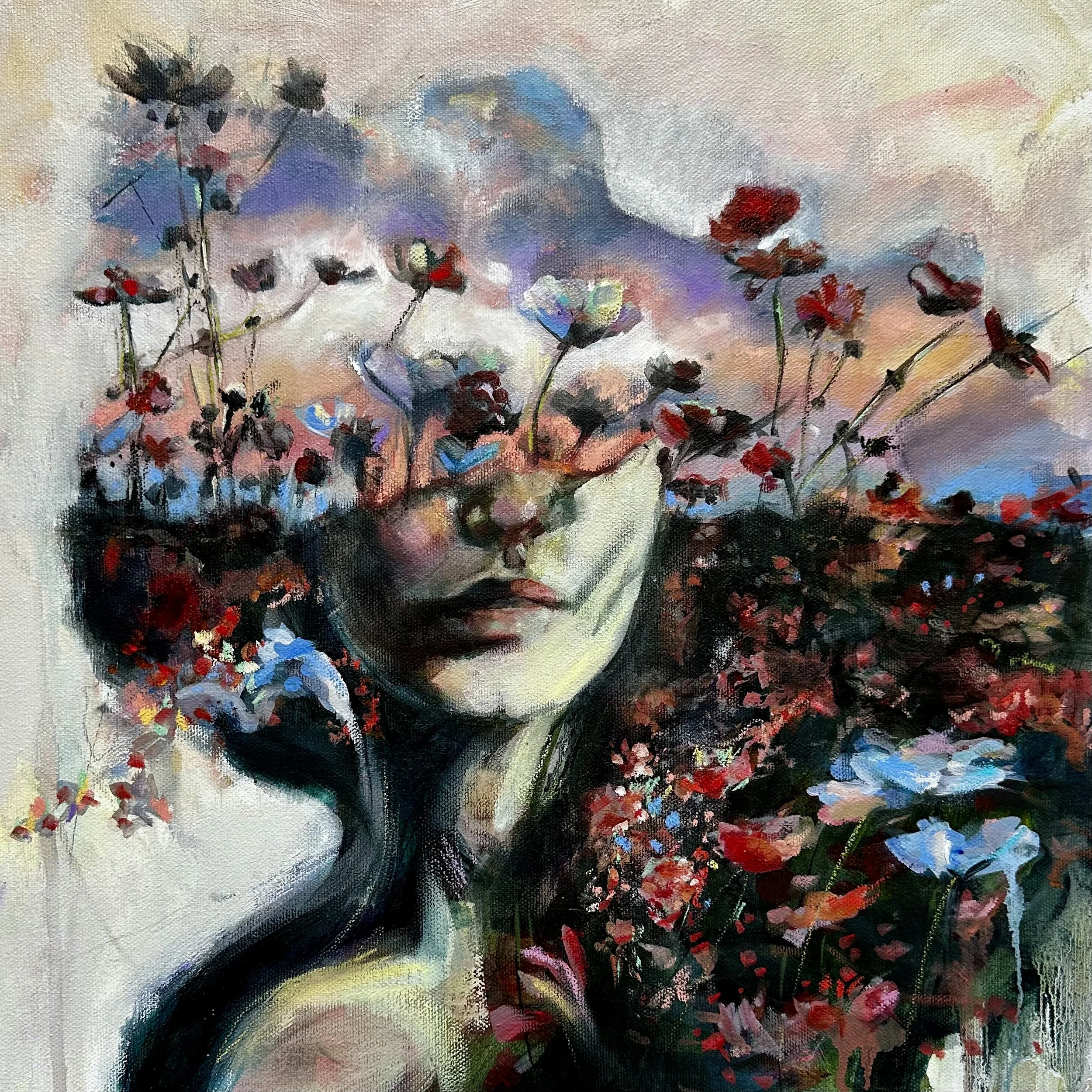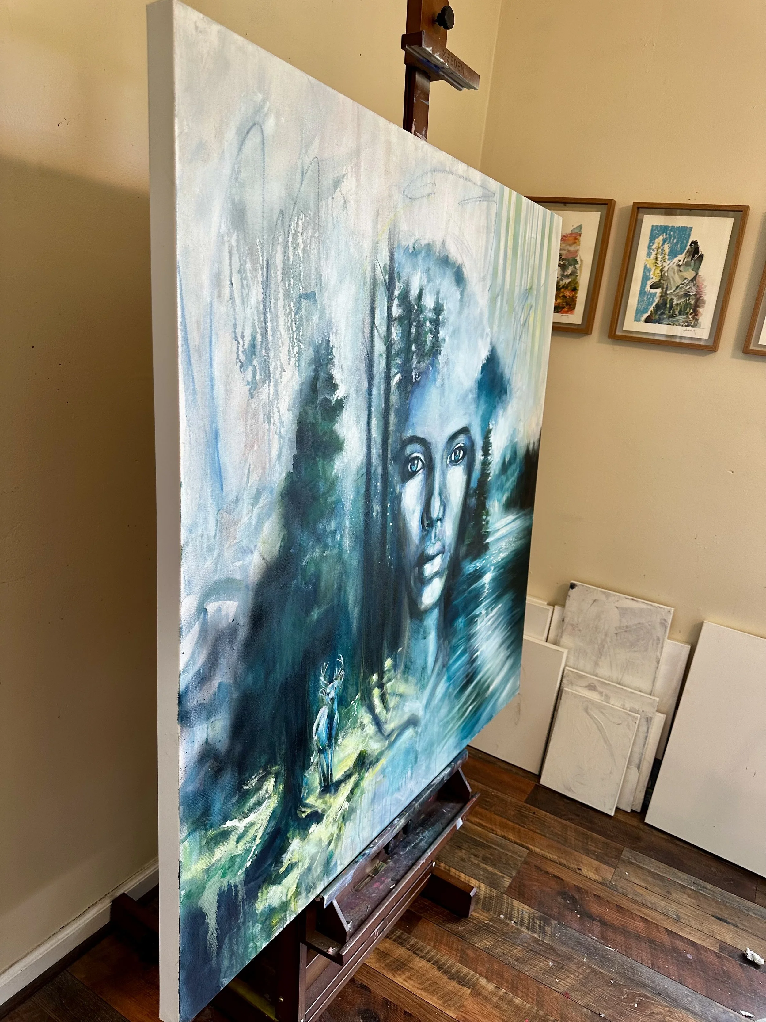 Arcrylic, pastel, spray paint, and oil paint on gallery wrapped canvas.