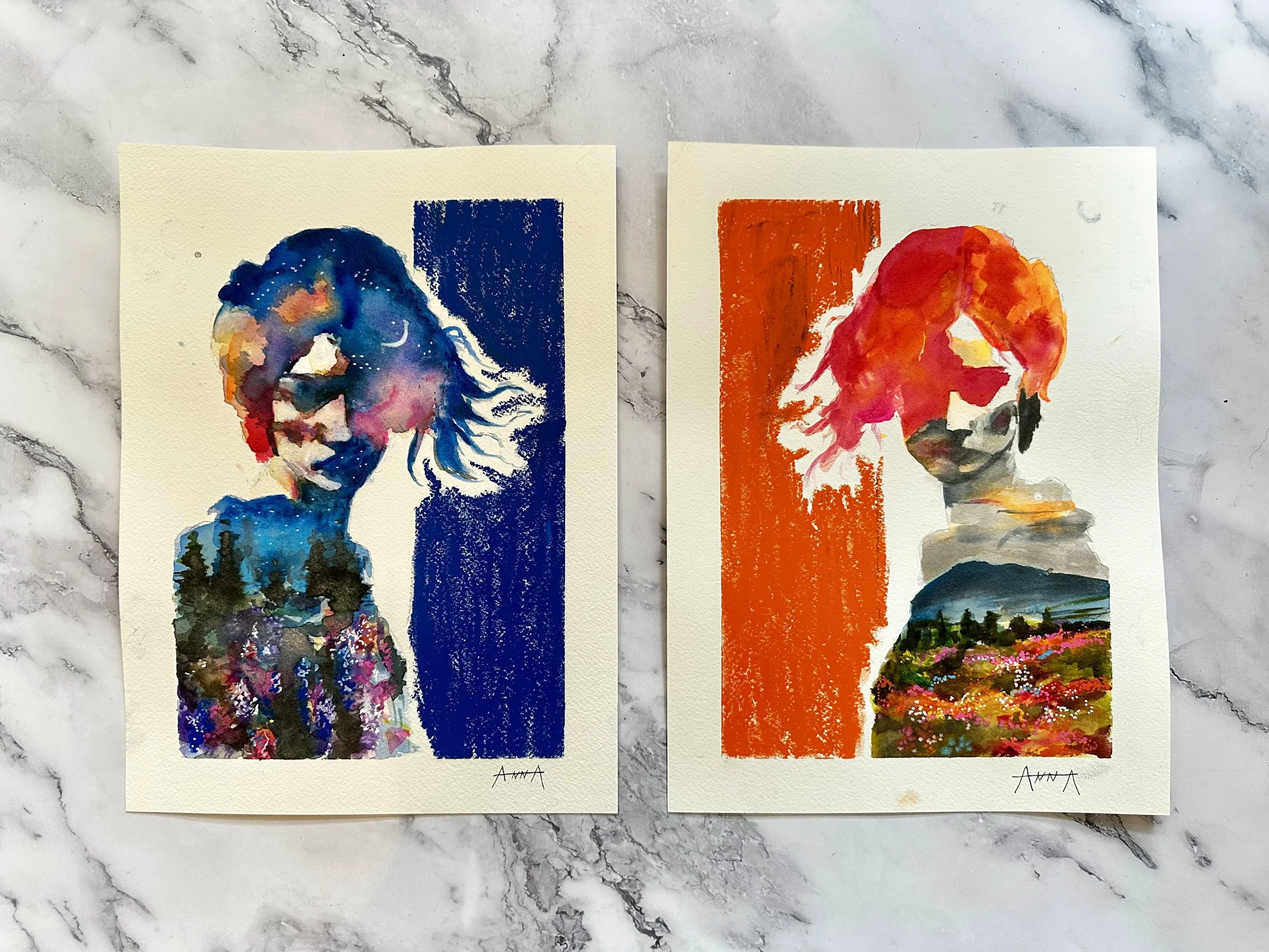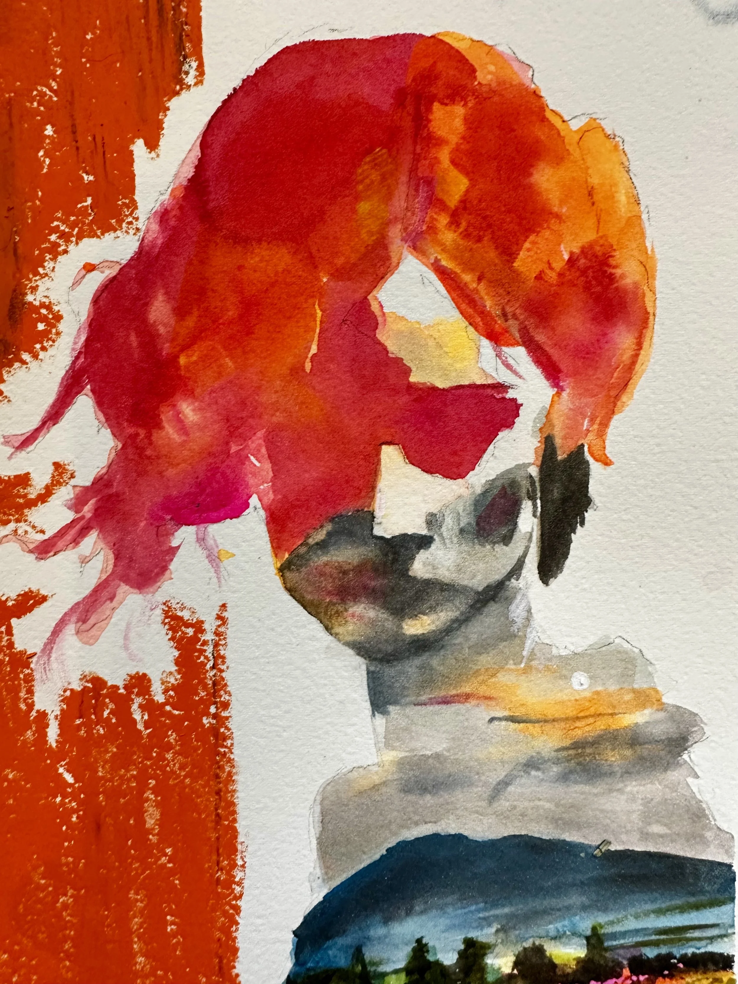 Watercolor, ink, and pastel on arches water color paper